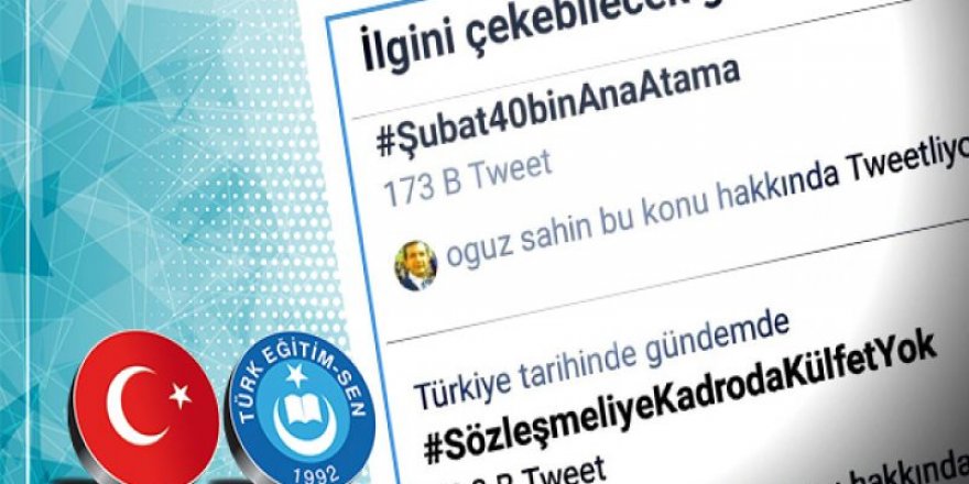 Türk Eğitim-Sen Genel Başkanı Talip Geylan, 21.01.2019 tarihinde Şubat’ta 40 bin öğretmen ataması daha yapılması talebimizi gündeme getirmek için twitter’da hashtag çalışması yaptı.