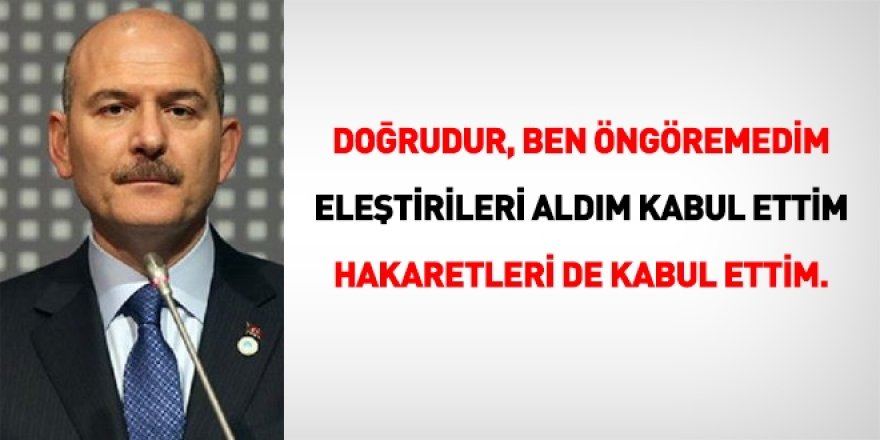Süleyman Soylu: Öngöremedim. O geceki eleştirileri de hakaretleri kabul ediyorum