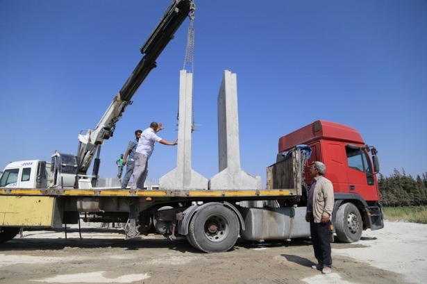 Geçtiğimiz günlerde alt yapısı tamamlanan çalışmalar sonunda, tırlarla getirilen dev beton bloklar, vinç yardımıyla sınıra dizilmeye başlandı.