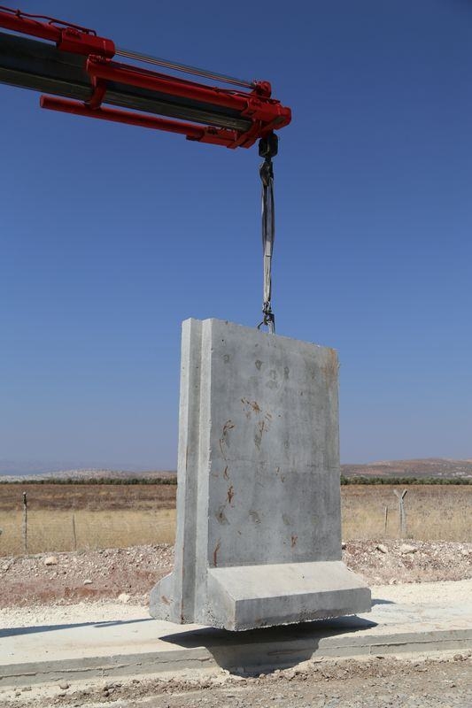 Hatay'ın Reyhanlı ilçesindeki Suriye sınırına, 2 metre genişlik 3 metre yükseklikteki 7 tonluk seyyar bloklar kullanılarak, duvar örülmeye başlandı.