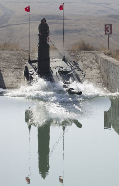 Gösterileri sırasında ilave teçhizatsız yaklaşık 1,5 metre, ilave teçhizatla 4 metre derinlikteki sulardan geçen muharebe sahasının etkin silahları tanklar, yüzde 60 meyilin olduğu arazide ise hızlarını dahi kesmiyor.