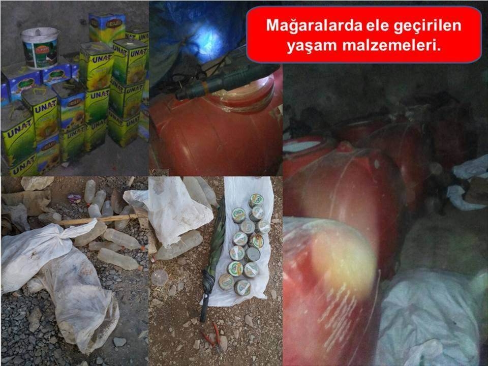 TSK tarafından Buzul dağları, Havillati, Urşe arasında icra edilmekte olan operasyonda Kervan gölü ve Kelyanur gölü arasında kalan tepede bulunan mağarada yapılan aramada ele geçirilen malzemeler ve silahların fotoğrafları ve görüntüleri de paylaşıldı.