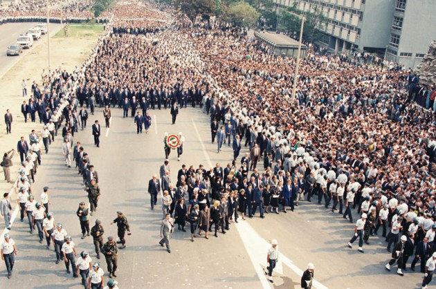 Cumhurbaşkanı Özal, eski Başbakanlardan Merhum Adnan Menderes ve Bakanlar Fatin Rüştü Zorlu ile Hasan Polatkan’ın İstanbul’daki anıt mezarlığa nakil töreninde… (17 Eylül 1990)