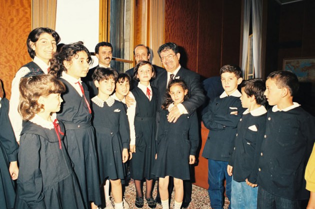 Cumhurbaşkanı Özal, ilkokul çocukları ile bir arada…