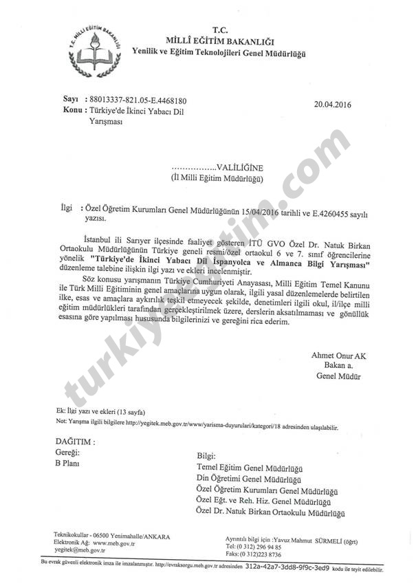 Özel Öğretim Kurumları Genel Müdürlüğü tarafından yayınlanan Türkiye'de İkinci Yabancı Dil Yarışması Duyurusu