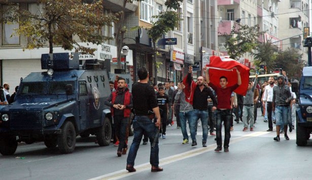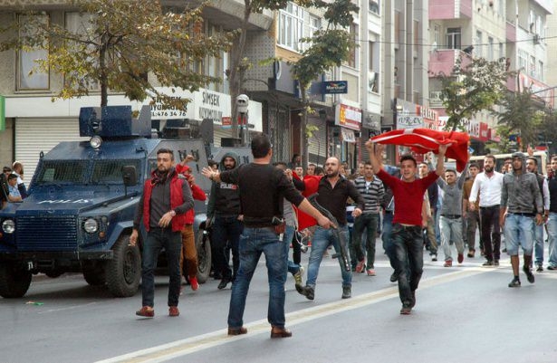 IŞİD'in Kobani'de saldıralarını arttırmasının bahane bilenler Türkiye'de ortalığı birbirine kattı. Polise taş ve sopalarla saldırdılar.