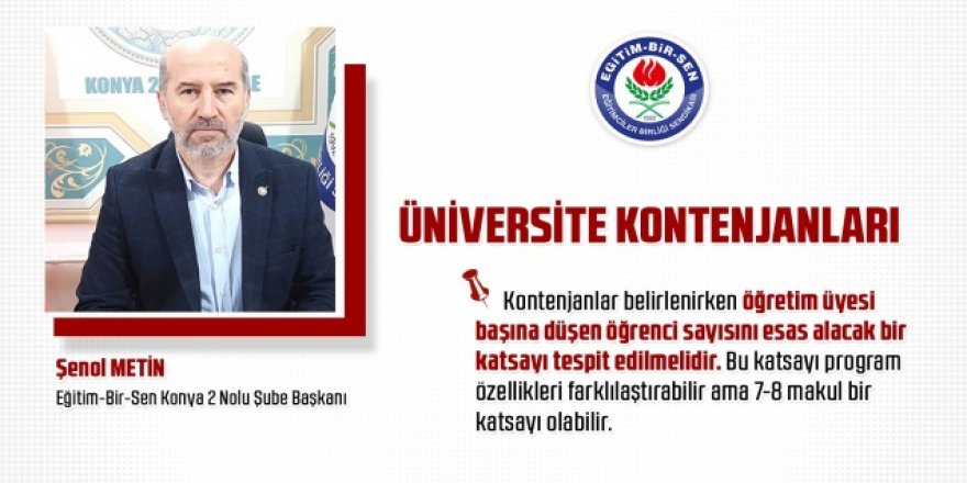 Kontenjanlar belirlenirken öğretim üyesi başına düşen öğrenci sayısını esas alacak bir katsayı tespit edilmelidir. Bu katsayı program özellikleri farklılaştırabilir ama 7-8 makul bir katsayı olabilir.