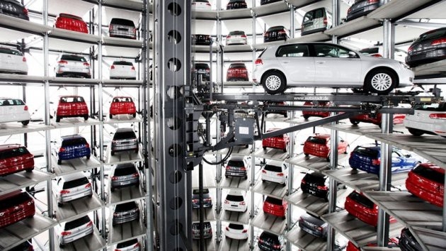 Özel tasarlanan sistem sayesinde kulelerden araçlar kolay bir şekilde alınabiliyor, yerleri değiştirilebiliyor.