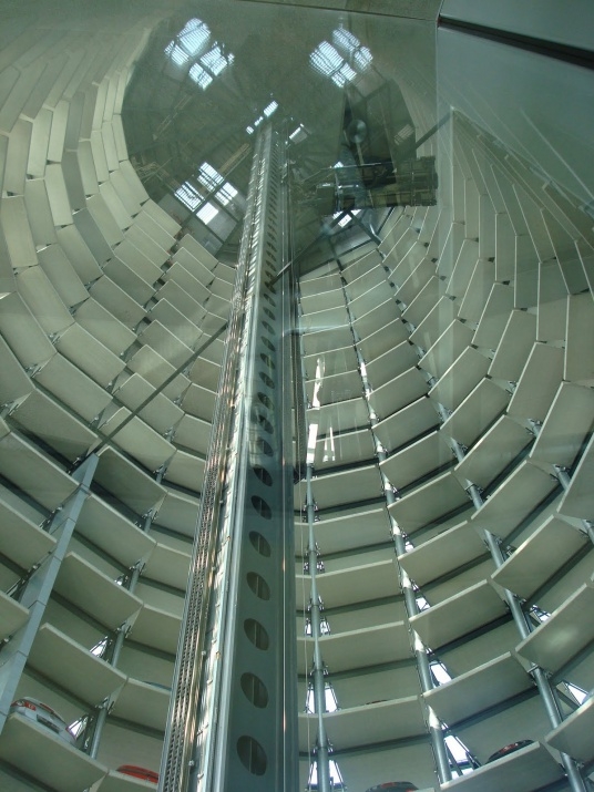 Cam asansör ile, ziyaretçiler yine aynı sistemle panoramik bir görüş açısıyla araçların bulunduğu kuleleri gezebiliyor.
