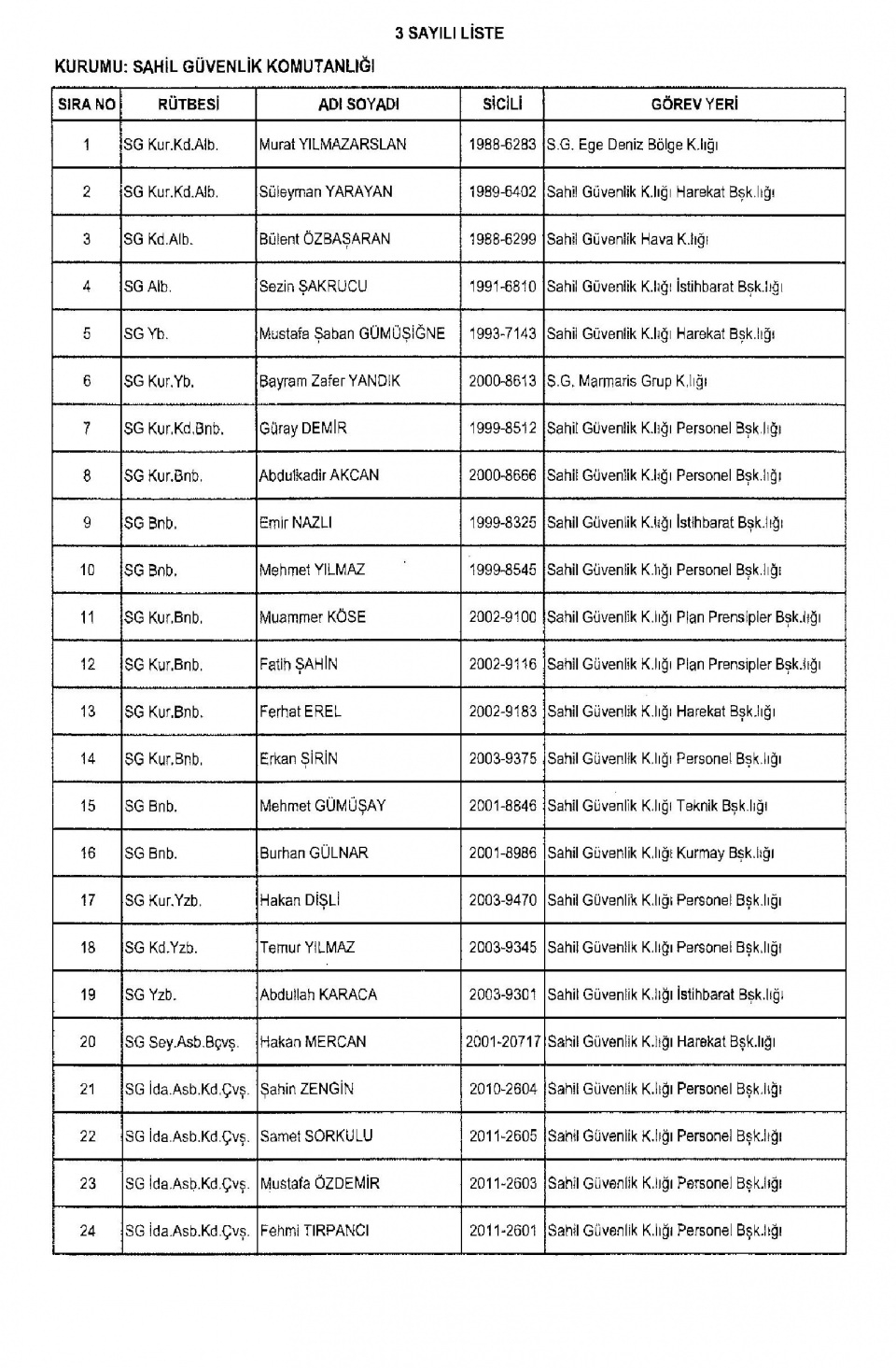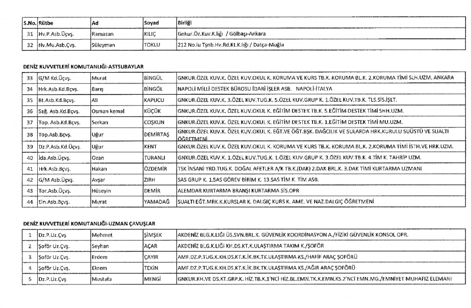 Yayımlanan yeni kararname ile Emniyet'te çalışan 2 bin 360, BTK'da çalışan 196 kişi ihraç edildi. TSK'dan ihraç edilen personel sayısı 136. Bu personelden 24'ü Sahil Güvenlik Komutanlığı'ndan FETÖ'yle irtibatı olan 2692 kişinin memuriyeti sona erdi.