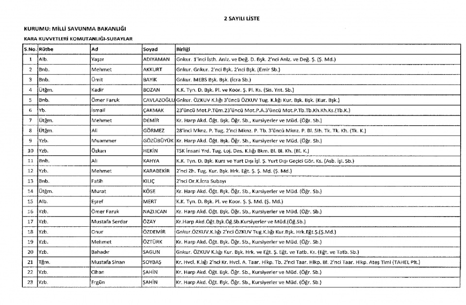 Yeni kararnameyle ihraç edilen personeller