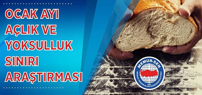 Memur-Sen Konfederasyonu tarafından her ay düzenli olarak yapılan açlık-yoksulluk araştırmasına göre Ocak ayında Türkiye’deki 4 kişilik bir ailenin açlık sınırı bin 534,14 TL, yoksulluk sınırı ise 4 bin 128,072 TL olarak tespit edildi. Yapılan araştırmaya göre Aralık ayına göre Ocak ayında gıda madde fiyatlarında ortalama yüzde 5,80’lik bir artış yaşandı. Ocak ayında göze çarpan en büyük artışlar yüzde 52,78 artışla çarliston biber, yüzde 41,76 artışla kabak, yüzde 37,96 artışla salatalık, yüzde 37,79 artışla sivri biber; en çok göze çarpan düşüşler ise yüzde 7,17 azalışla portakal, yüzde 3,89 azalışla balık, yüzde 1,22 azalışla salça, yüzde 1,16 azalışla kola madde fiyatlarında yaşandı.