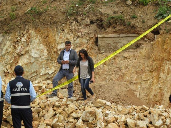 Kepçenin lahit mezar olduğu tahmin edilen yapıta denk gelmesi üzerine çalışmalar durdu.