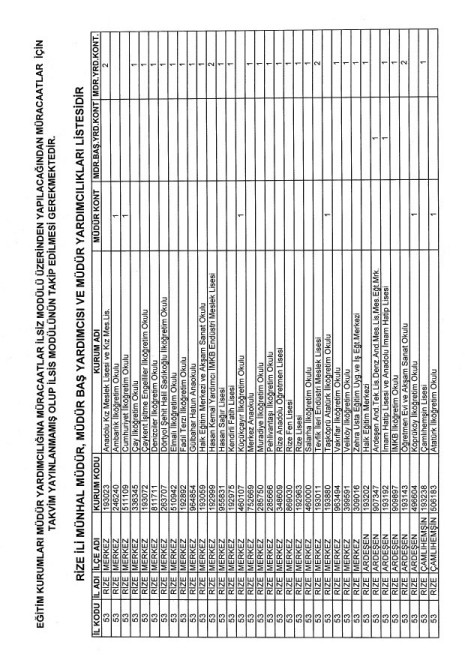 Rize İl MEM Münhal Okul/Kurum Müdürlüklerini, Müdür Başyardımcılıklarını ve müdür Yardımcılıklarını yayınladı.