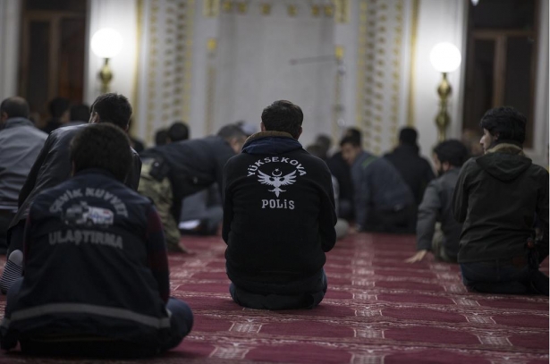 Akşam namazının ardından, camiye gelen çok sayıda asker ve polis, birlikte saf tutup namaz kılarak, şehit olan meslektaşları için dua etti.